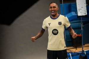 巴萨官方社媒晒出莱万、拉菲尼亚身穿科比联名球衣定妆照片,配文:“曼巴精神。”